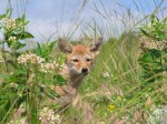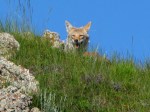 A few days later, I once again approached the den. This time the dogs were tied to my belt with leashes and the gun was strapped to my side. The male kept his distance and the female and a pup made a beeline for the den. I sat a thirty feet from the den behind some tall grass and brush. Soon a pup came out of the den and curiously looked around. He snuck in closer and peered through the brush to check out the new yotes on the block. He popped up from ten feet away and stared at us. Eyeball to eyeball with a three month old coyote pup! The very essence of wildness. The wonder of God’s creation. A blessing beyond measure.
