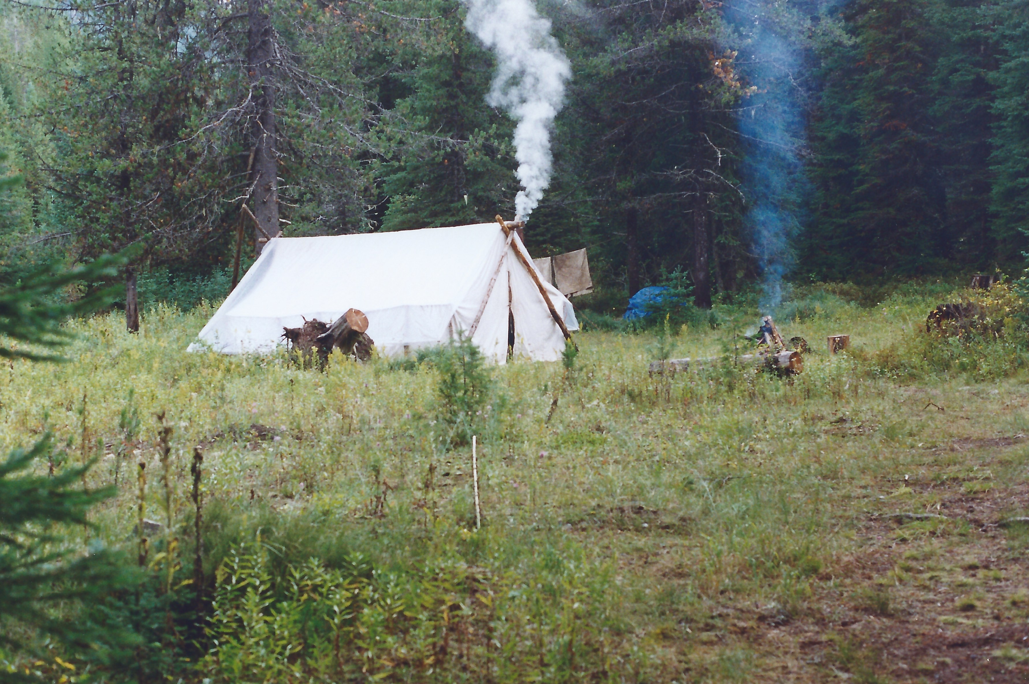 We rode into camp in twilight, unsaddled horses, watered them, tied them to high lines, fed hay and grain, then I lit the lanterns and the guys carried their gear into the hunter’s tent just as John and Tim arrived to help unload the panyards.