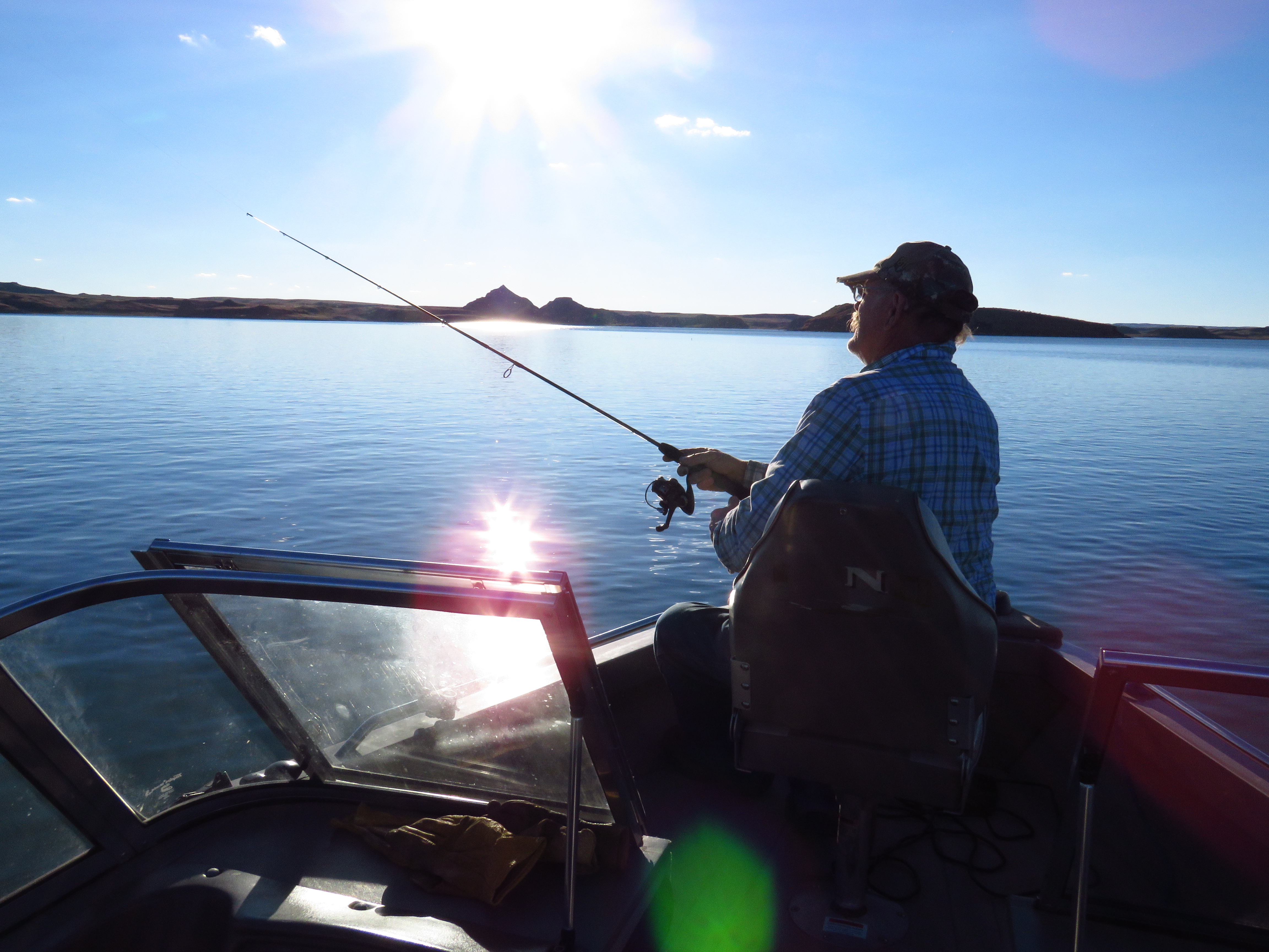 IMG_6276 In May John and I found the perfect boat in our price range, a bigger, newer, safer boat than our old one. For us, boating and exploring the huge, remote Fort Peck reservoir in Montana takes the place of horse packing into the high country. We love the peace and tranquility of being on the water and exploring those nooks and crannies on the lake, where very few people venture. And catching the big Pike isn’t bad either.