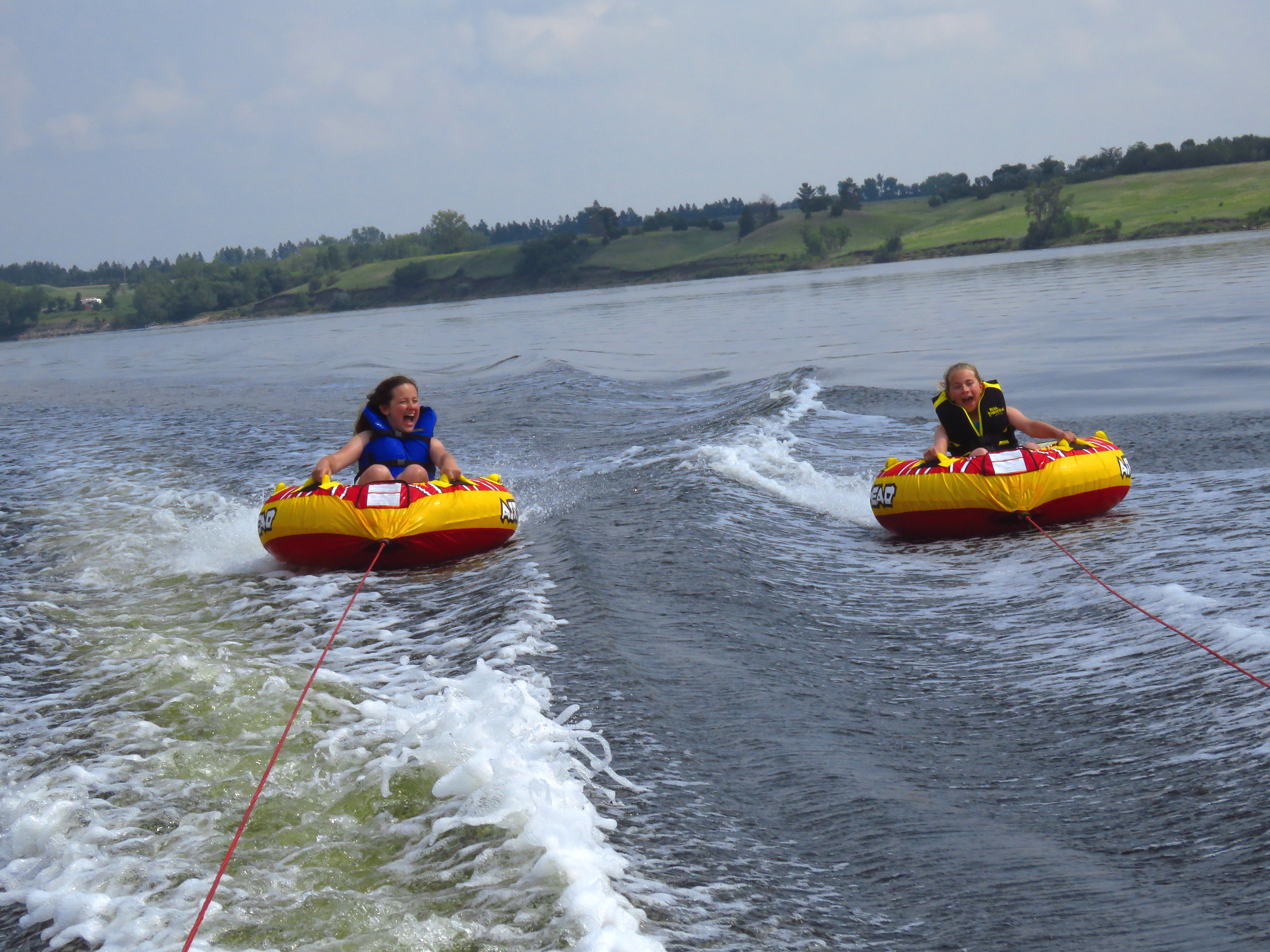 IMG_8708All of us, with friends Saren, Jenna and Jared, went tubing on a lake east of here. The kids had a ball on the tubes and in the boat all day. Actually I’m not sure who had more fun, John or the kids.  We camped, fished and boated at Ft. Peck for four days and had a ball. As the final finale, we went to the Monster Truck show in Bismarck and it was great!