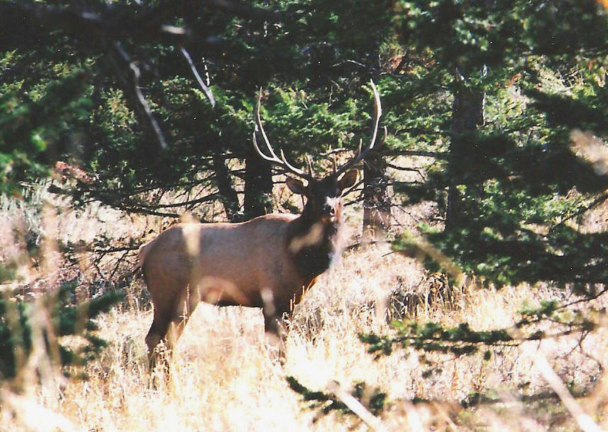 Immediately the high tones of an answering bull rang through the timber. My heart skipped into double time and I looked at Linda, whose eyes were wide. She motioned for me to bugle again. Not a heart beat after my bugle died, the thrilling call of a bull elk sailed on the clear mountain air, coming from just below us.