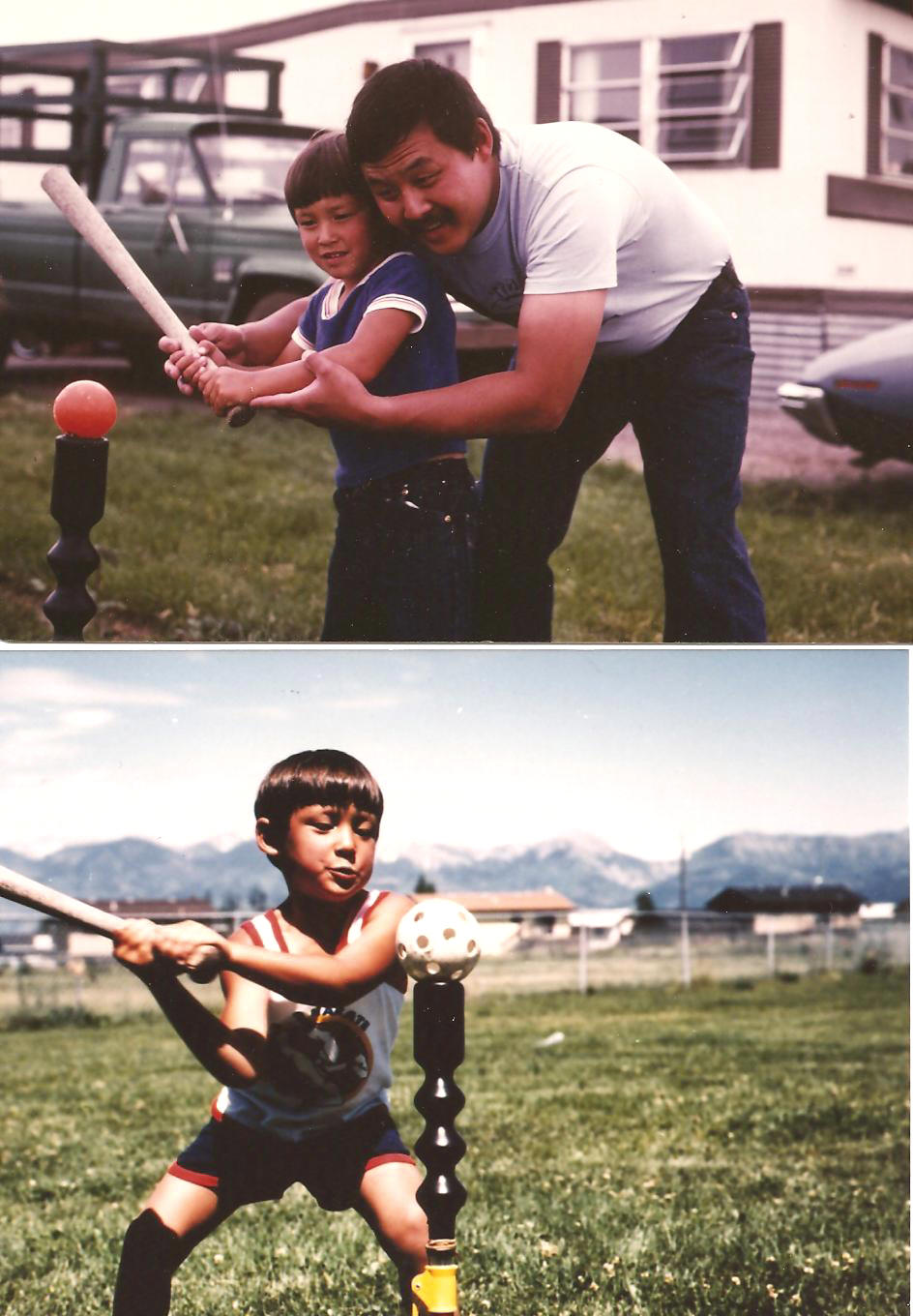 Jim giving 4year old Stephen some pointers on hitting the ball
