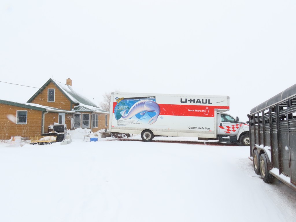 It was amazing!  Every little detail fell into place. Even concerning my horse, but that’s another story.  Many things were sold, boxes were slowly filled, friends offered to help drive a rig to Oregon, a u-haul truck was available for the date we needed, kitties were given a home (in the same house) friends helped load the truck, in a snow storm no less, rigs started even though it was -15 the morning we left Beach.